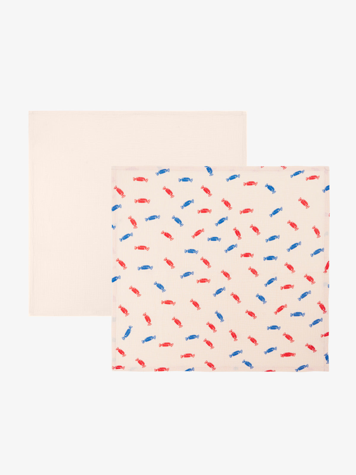 Miękkie pieluszki z bawełny organicznej z certyfikatem GOTS. W komplecie 2 sztuki: jedna posiada jednostronny nadruk Cukierki, druga jest gładka. Jest to produkt niezbędny podczas karmienia, pielęgnacji oraz codzienności maluszka.