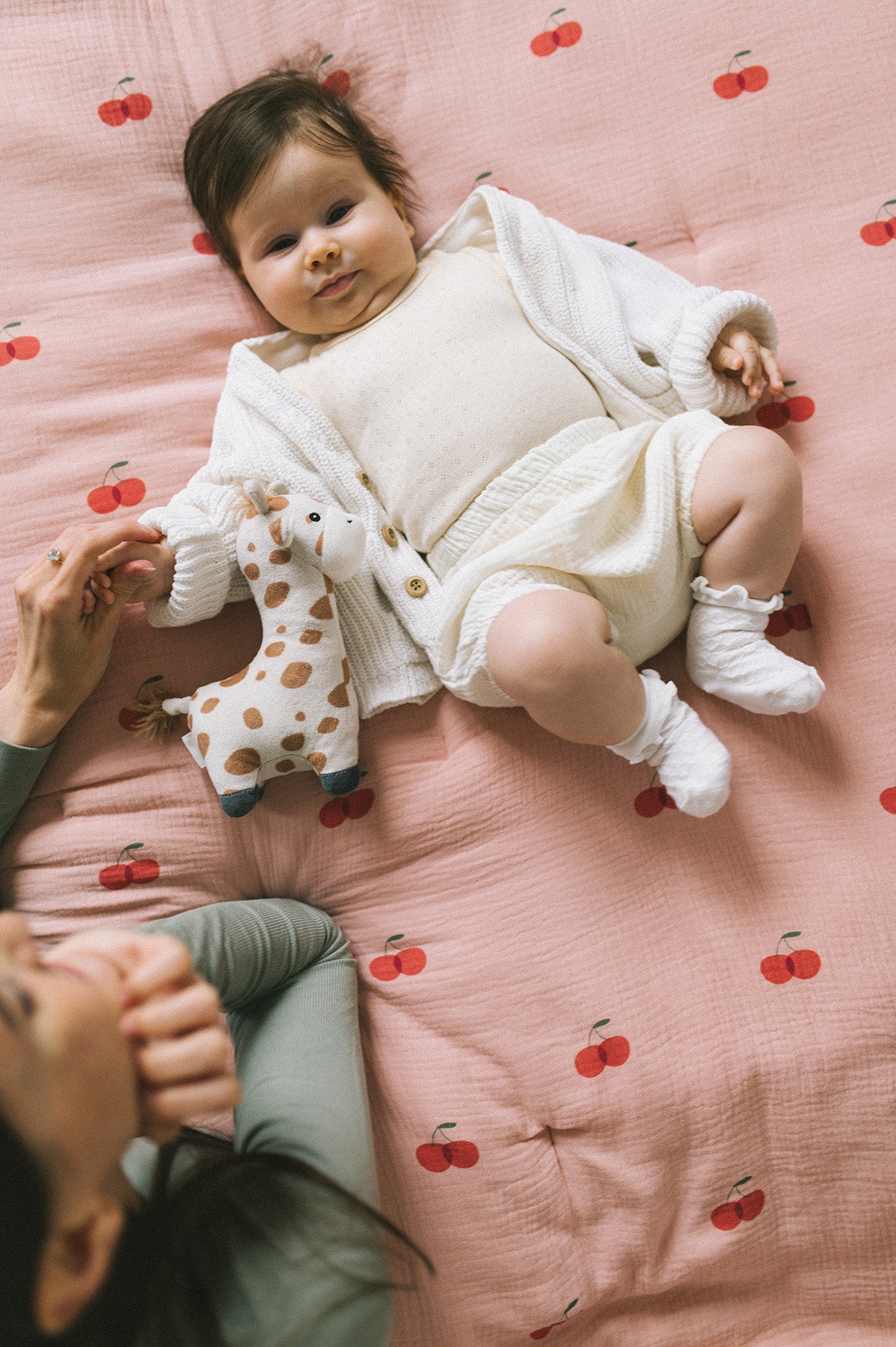 Pikowana kołdra z organicznego muślinu z antyalergicznym wypełnieniem jest idealna od narodzin. Sprawdzi się nie tylko do spania, ale także jako miękka narzuta na łożko, mata na podłogę, przykrycie w zimniejsze wieczory.