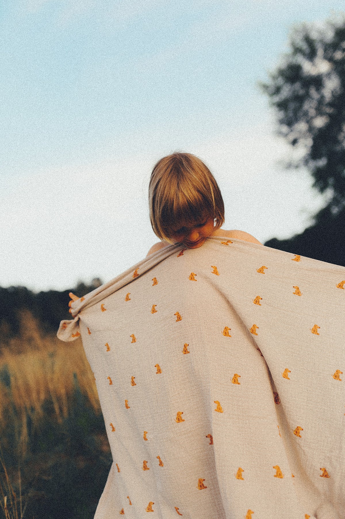 Miękki i duży otulacz ze 100% bawełny organicznej z certyfikatem GOTS z naszym uroczym printem Najlepszy Przyjaciel. Uniwersalny produkt od pierwszych dni życia, który jest przewiewny, antybakteryjny, antyalergiczny i chłonny. Nie przegrzewa i posłuży Wam na długo.