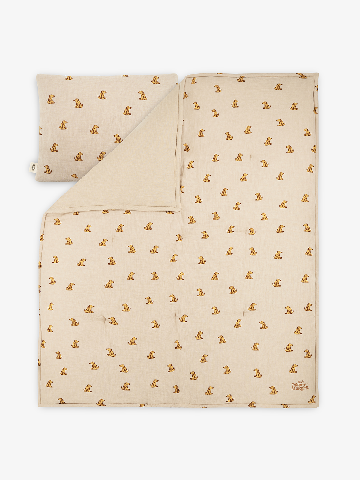 Komfortowa, miękka poduszka z podwójną warstwą muślinu z certyfikatem GOTS z antyalergicznym wypełnieniem. Jest odpowiednia także dla maluszków, jako pierwsza poduszka pod główkę.